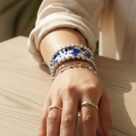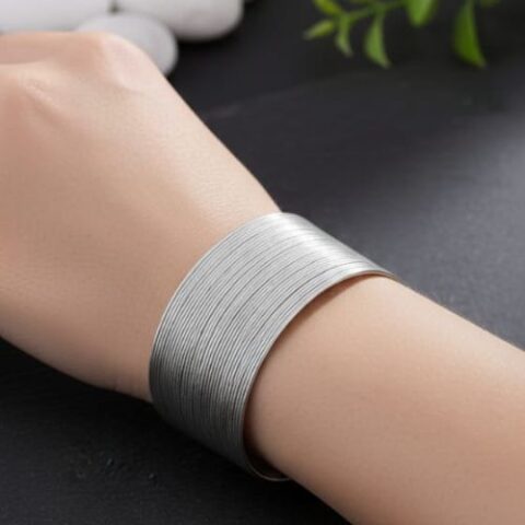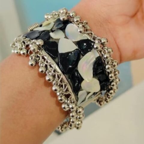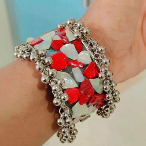 611 women’s silver-plated multi-colour stone studded oxidized cuff bracelet.