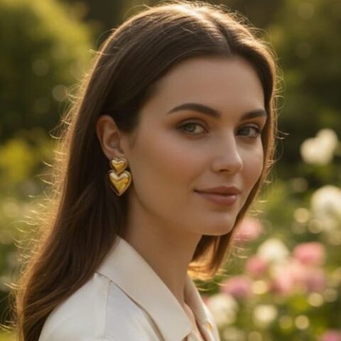 N12 Gold Color Heart Figured Earrings