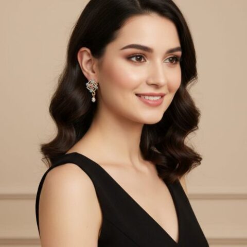 165gold-plated fashion earrings featuring a distinctive design with red and white American Diamond or Cubic Zirconia stones