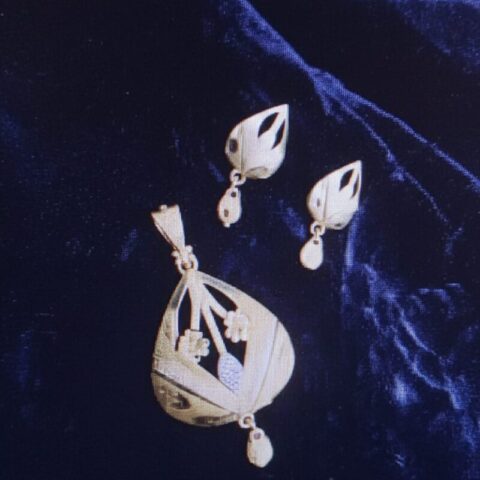170gold-plated jewelry set with a distinctive peacock pendant and matching stud earrings.