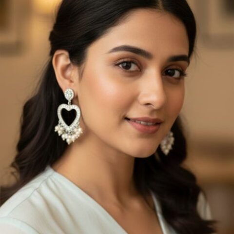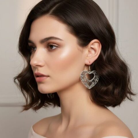 107fashionable gold-plated earrings with red and clear stone embellishments,