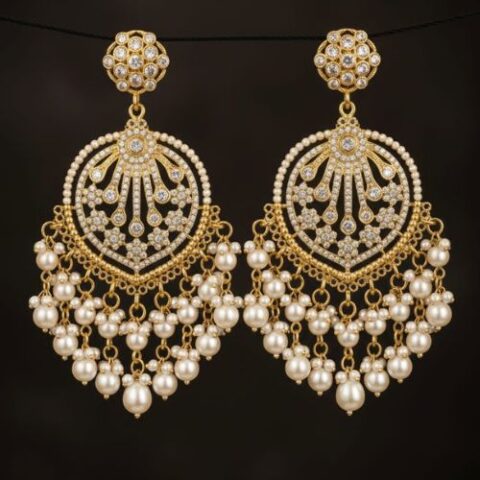 460 The earrings shown in the image are a style of traditional Indian jewelry known as Kundan or Polki earrings, often featuring a design with a pearl drop