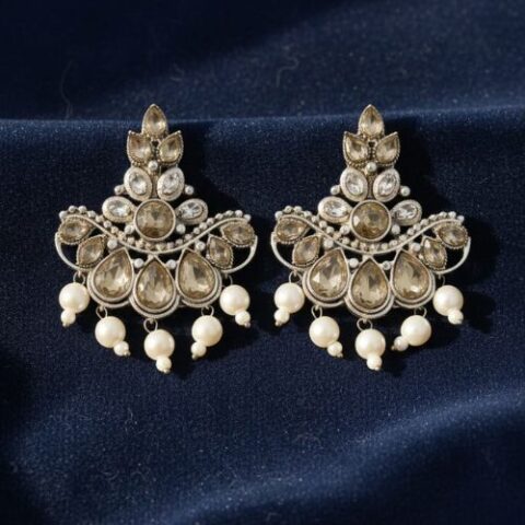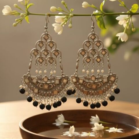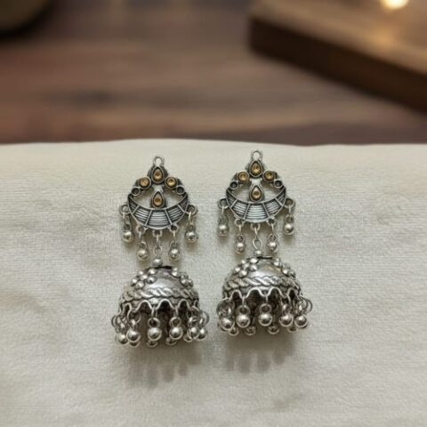 578 xidized silver heart-shaped jhumka earrings with pearl drops