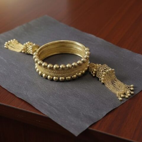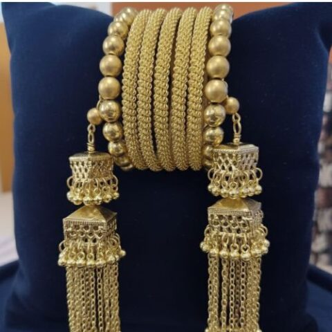 576 antique golden shade alloy metal sleek beads chain bangles.