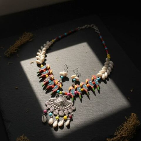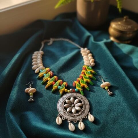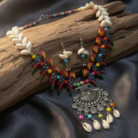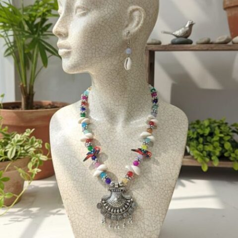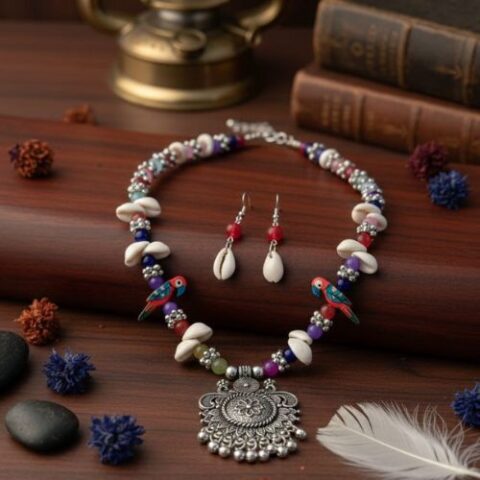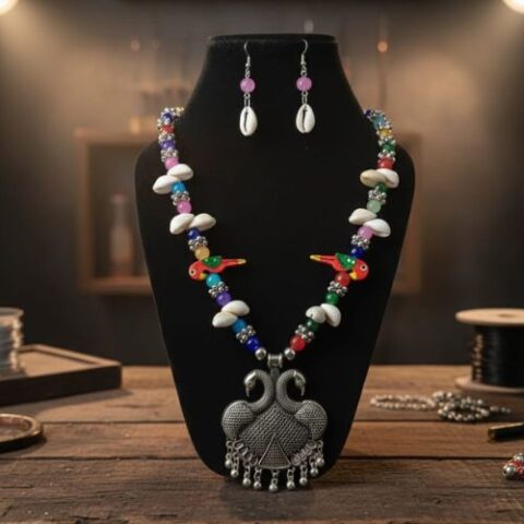 596 handcrafted, multicoloured, oxidised tribal jewelry necklace set