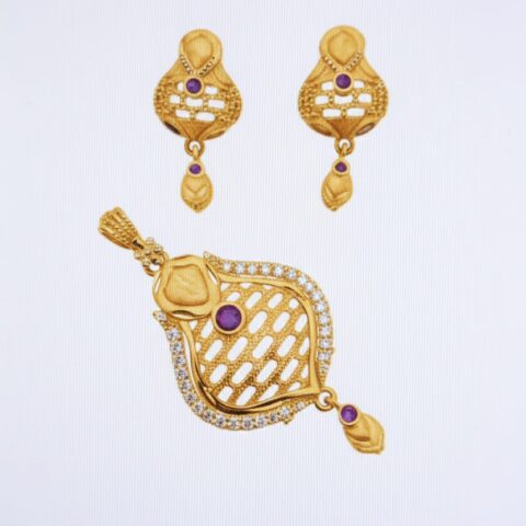 91Fancy Beautiful Gold-Plated Pendant and Earring Set for Women,
