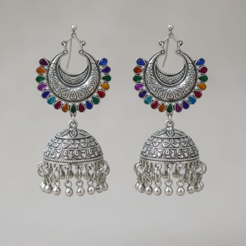 JJ041 Ladies Multicolor Oxidized Jhumki Earrings suitable for party wear.