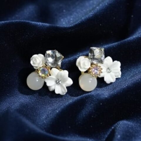 JJK 21 Fashion Luxury Camellia Pearl Stud Earrings or similar variations like Pearl Bow Dangle Earrings.