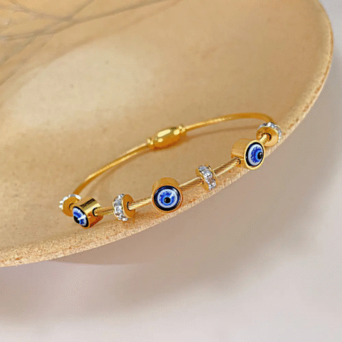 162Gold-Plated Evil Eye Bracelet with Zircon Studded Charms.