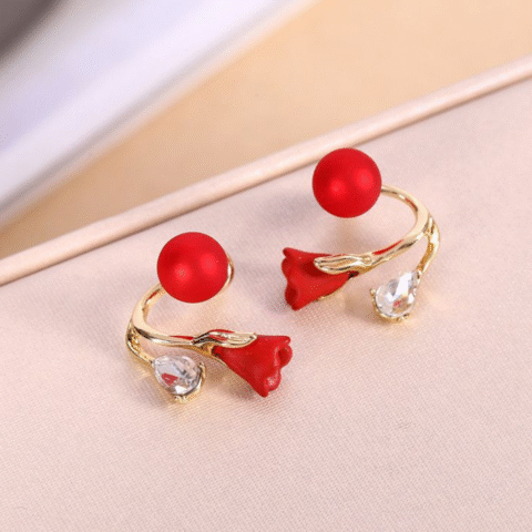 JJK52 Red Rose Flower Stud Earrings with Accent