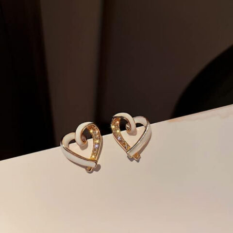 KA 3Heart-Shaped Stud Earrings, White Enamel with Gold-Tone Border
