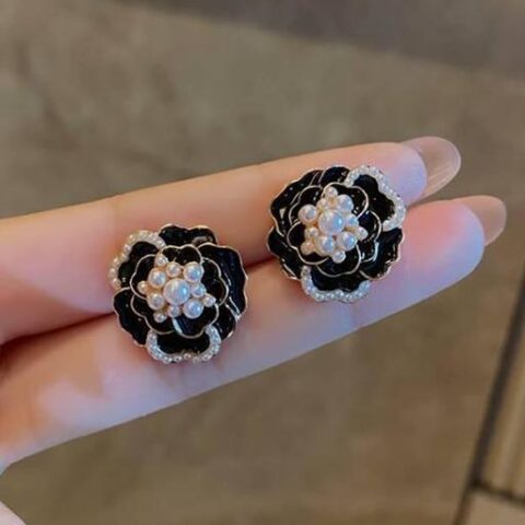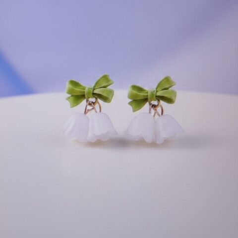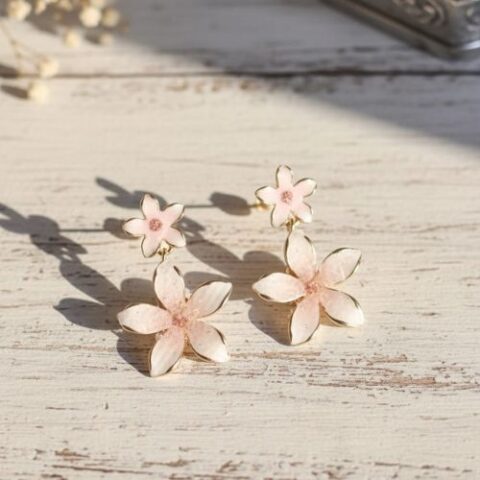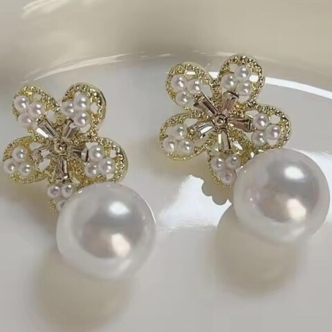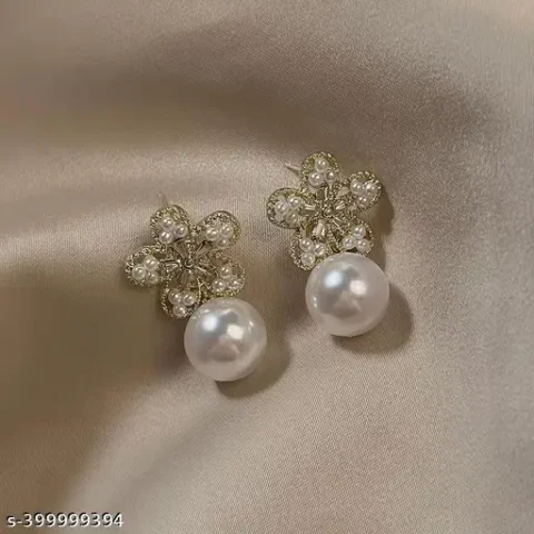 KA38 C&C Jewelry White Flower and Pearl Long Drop Earrings.