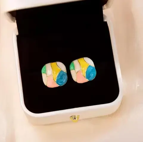 JJK92 Celestria Colorful Retro Mosaic Round Stud Earrings For Women