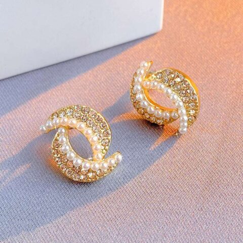 259 Korean Niche Design Pearl Flower Stud Earrings