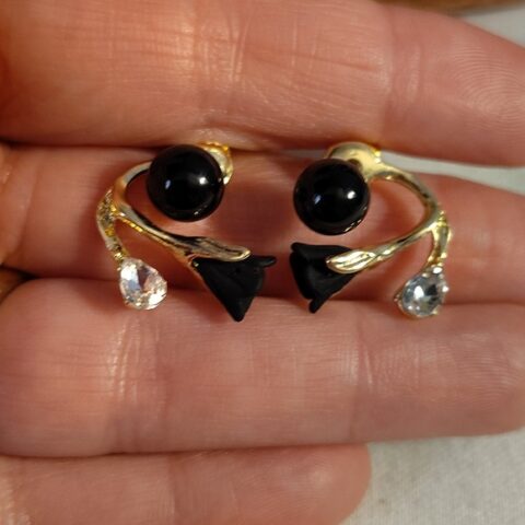 260 Korean Style Black Enamel & Rhinestone Geometric Gold-Plated Drop Earrings