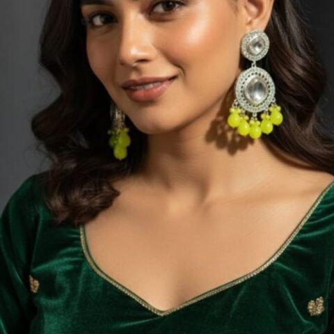 557 traditional gold-plated Kundan earrings with yellow beads.