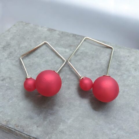JJK 52 Korean Fashion Red Tulip Flower Pearl and Crystal Stud Earrings.