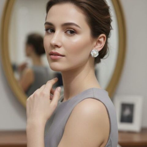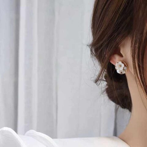 JJK 36 Double Circle Pearl and Rhinestone Earrings or Double Circle Diamond Rhinestone Pearl Earrings.