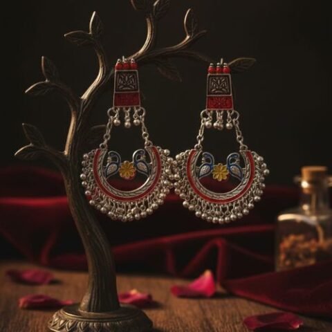 357 Oxidised Jhumka earrings in a small, multicolored design,