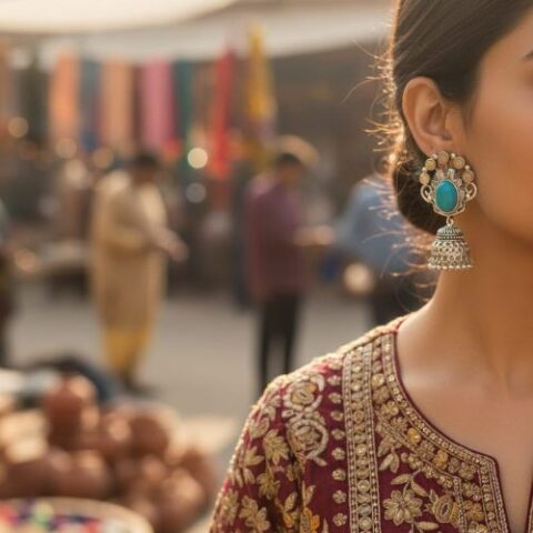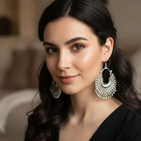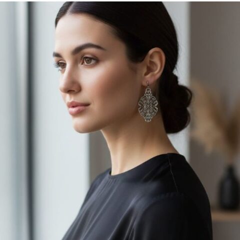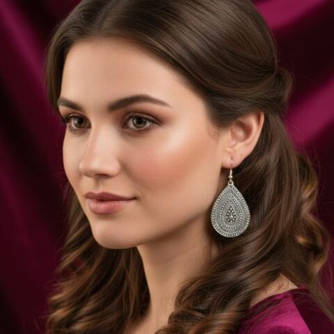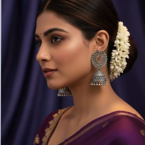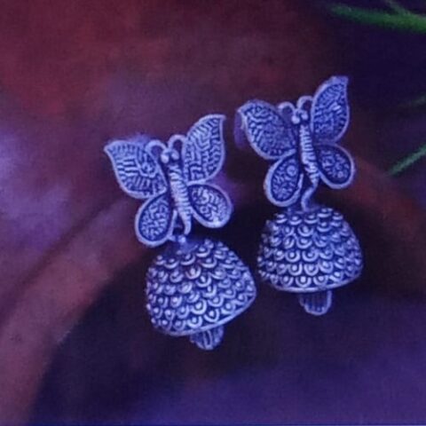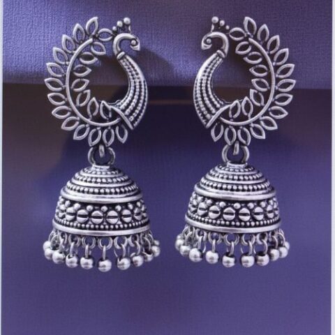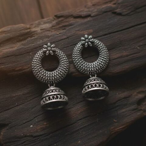 567 traditional silver-toned oxidized Kashmiri jhumka