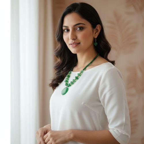 413 Green Spinel Style Set is a captivating jewelry ensemble that exudes elegance and sophistication. Featuring vibrant green spinel-inspired stones, this set combines rich color with intricate detailing, creating a look that is both luxurious and stylish. The carefully crafted design enhances its visual appeal, making it perfect for festive occasions, weddings, or special gatherings. Lightweight and comfortable, it allows for effortless wear throughout the day or evening. Ideal for pairing with sarees, lehengas, or contemporary ethnic outfits, the 413 Green Spinel Style Set adds a touch of glamour and refinement, making it a must-have accessory for those who cherish timeless beauty and statement jewelry.