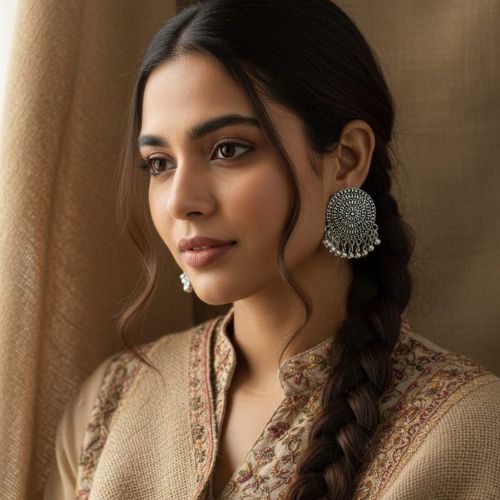 Add a bold touch of tradition to your look with the 490 Oxidised Earrings, designed to reflect timeless Indian craftsmanship. These earrings feature intricate detailing in a classic oxidised silver finish, offering a vintage charm that complements both ethnic and fusion outfits. The beautifully crafted patterns give them a rich, handcrafted feel, while their lightweight design ensures all-day comfort. Perfect for festive occasions, cultural events, or everyday ethnic wear, they pair effortlessly with sarees, kurtis, and lehengas. The 490 Oxidised Earrings are a must-have for anyone who appreciates elegant, heritage-inspired jewelry with a modern twist.