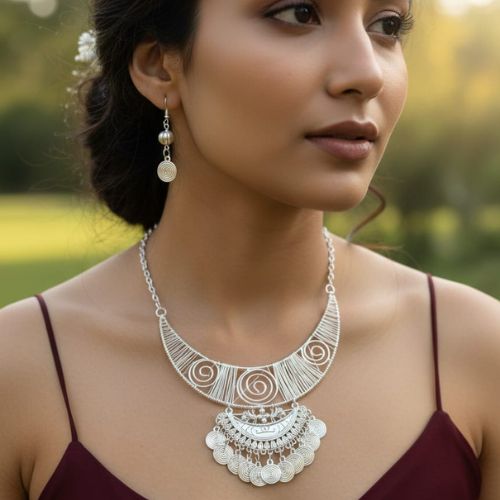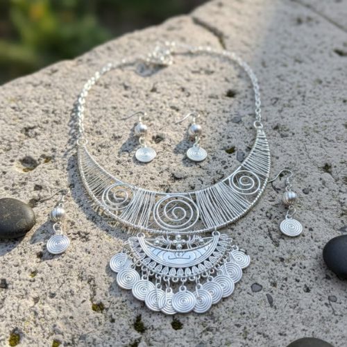 Make a bold style statement with the 537 Bohemian Statement Bib Necklace and Earring Set, designed for free spirits and trendsetters. This eye-catching set features an intricately layered bib necklace adorned with artistic detailing that reflects true boho charm. Paired with matching earrings, it creates a harmonious and striking look perfect for festivals, vacations, or elevating everyday outfits. Lightweight yet dramatic, this set adds texture, color, and personality to your ensemble. Whether styled with flowing dresses or simple tops, the 537 Bohemian Statement Set brings effortless elegance and confident individuality to any occasion.