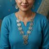Make a striking impression with the 540 Silver-Toned Metal Bib Necklace and Earring Set, crafted to elevate your statement style. This bold bib necklace features layered metal detailing with a sleek silver-toned finish that reflects modern elegance. Paired with perfectly coordinated earrings, the set creates a cohesive and eye-catching look ideal for parties, evening events, or contemporary fashion styling. Designed to be lightweight yet impactful, it offers comfort without compromising on drama. Whether worn with minimalist outfits or bold ensembles, this versatile set adds a polished, confident edge to your jewelry collection.