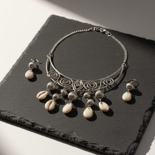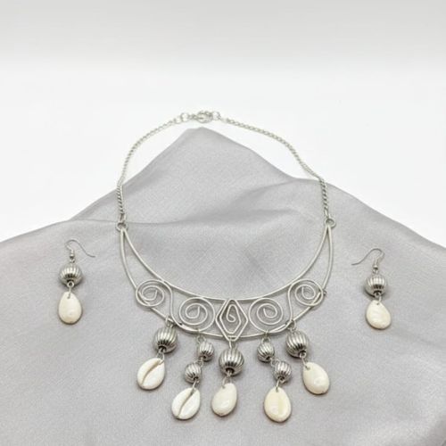 Make a striking impression with the 540 Silver-Toned Metal Bib Necklace and Earring Set, crafted to elevate your statement style. This bold bib necklace features layered metal detailing with a sleek silver-toned finish that reflects modern elegance. Paired with perfectly coordinated earrings, the set creates a cohesive and eye-catching look ideal for parties, evening events, or contemporary fashion styling. Designed to be lightweight yet impactful, it offers comfort without compromising on drama. Whether worn with minimalist outfits or bold ensembles, this versatile set adds a polished, confident edge to your jewelry collection.