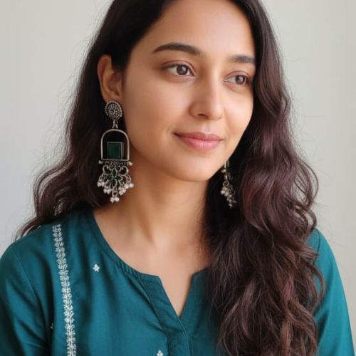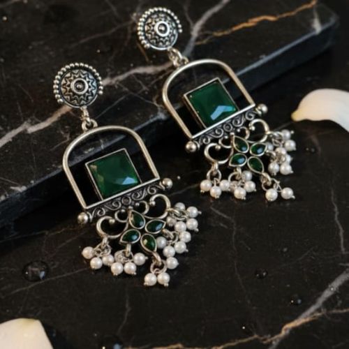 Enhance your look with the 561 Silver-Plated Oxidised Drop Earrings, a perfect blend of traditional charm and contemporary elegance. Crafted with intricate detailing and a rich oxidised silver-plated finish, these earrings capture vintage appeal while adding a modern touch. The graceful drop design creates movement and draws attention, making them ideal for festive occasions, cultural events, or stylish everyday wear. Lightweight and comfortable, they offer effortless wear without compromising on impact. Versatile enough to complement ethnic, bohemian, or fusion outfits, the 561 Drop Earrings are a timeless accessory that brings sophistication, artisanal craftsmanship, and enduring style to any ensemble.
