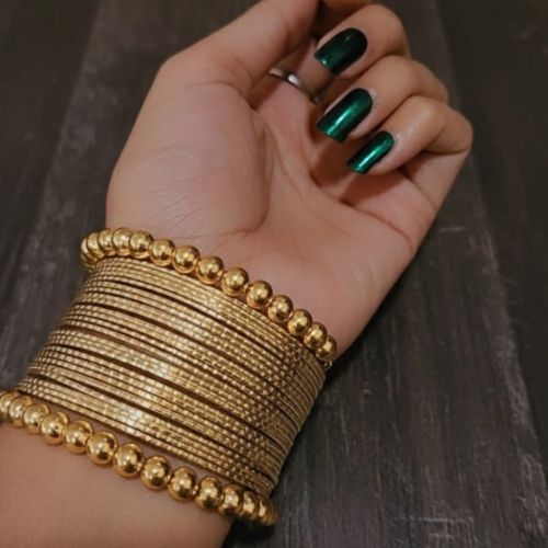 576 antique golden shade alloy metal sleek beads chain bangles.