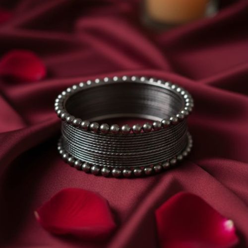 Add bold elegance to your jewelry collection with these 577 black oxidized metal bangles featuring intricate beadwork accents. Crafted from sturdy metal with a rich oxidized black finish, these bangles showcase detailed bead embellishments that enhance their traditional yet edgy appeal. The textured design adds depth and character, making them perfect for ethnic wear, fusion outfits, or statement styling. Comfortable to wear and durable for long-term use, they suit festive occasions, cultural events, parties, or everyday fashion. Ideal for bulk purchases, gifting, or resale, this versatile set blends classic craftsmanship with modern charm effortlessly.