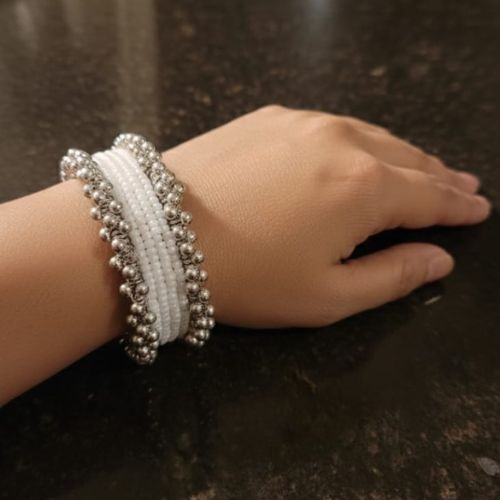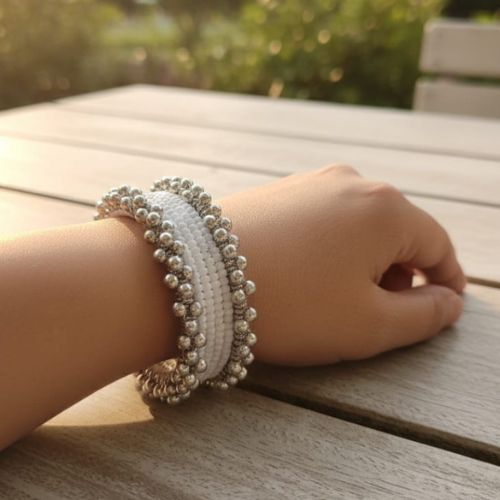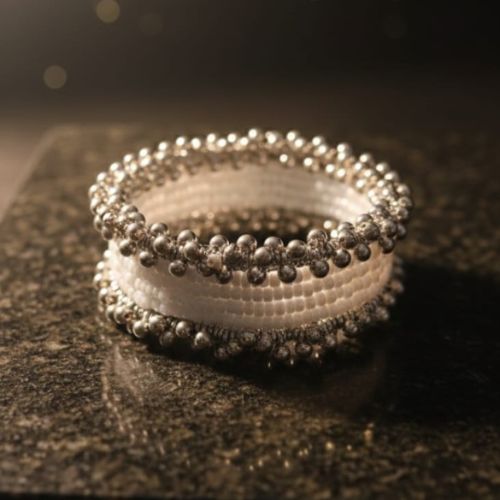 Enhance your jewelry collection with this 589 silver-finished kada bracelet, designed to blend classic elegance with contemporary style. Crafted with durable metal and a sleek silver finish, it offers a polished, timeless appeal suitable for any occasion. The sturdy yet comfortable design ensures easy wear, making it perfect for daily use, festive celebrations, parties, or special events. Its minimalist yet sophisticated look allows it to be paired effortlessly with ethnic attire, casual outfits, or layered with other bracelets for a stylish ensemble. Ideal for gifting or resale, this silver-finished kada is a versatile accessory that adds understated charm and lasting elegance to any wardrobe.