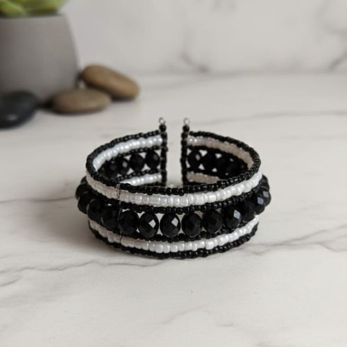 Add a touch of edgy elegance to your accessory collection with this 590 black beads and rhinestone wrap bracelet. Designed with sleek black beads intertwined with sparkling rhinestones, it creates a striking contrast that catches the eye. The wrap-around style offers a layered, contemporary look while ensuring a comfortable and adjustable fit for various wrist sizes. Perfect for casual wear, evening outings, parties, or festivals, this bracelet adds a bold statement to any outfit. Lightweight yet durable, it is ideal for everyday styling or special occasions. Great for gifting or resale, it combines modern flair with timeless charm.