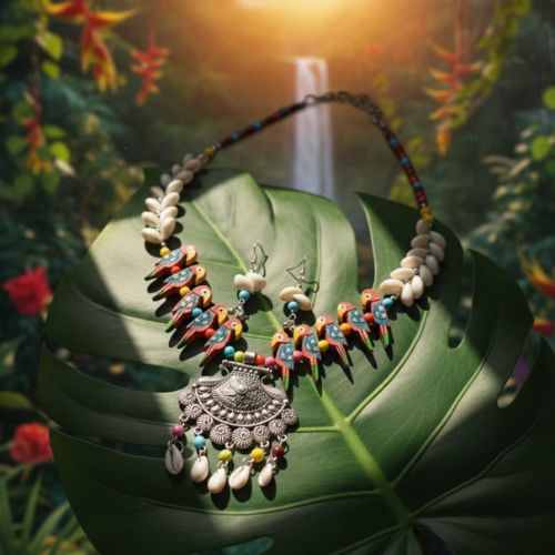 Add coastal charm to your jewelry collection with this 600 handmade artificial shell chain pendant necklace and earring set. Expertly crafted with delicate artificial shells and a stylish chain, the pendant serves as the focal point, while the matching earrings complete a cohesive, eye-catching look. Lightweight and comfortable, this set is perfect for casual outings, beachwear, festivals, or bohemian-inspired styling. The natural-inspired design pairs effortlessly with sarees, kurtas, or western outfits, making it versatile and trendy. Ideal for gifting or resale, this handmade set combines artisanal craftsmanship with modern elegance, offering a unique, statement accessory for any occasion.