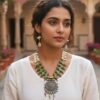 Celebrate artistic elegance with this 602 handcrafted, multi-colored bird-motif necklace and earring set featuring a striking large pendant. Beautifully designed with vibrant hues and detailed craftsmanship, the bird motif symbolizes freedom and creativity, making this set truly unique. The bold pendant serves as the centerpiece, while the matching earrings complement the design for a cohesive look. Lightweight and comfortable, it is ideal for festivals, cultural events, parties, or bohemian and fusion styling. Pair it effortlessly with ethnic wear or contemporary outfits to create a standout look. Perfect for gifting or resale, this handcrafted jewelry set blends traditional artistry with modern flair and eye-catching charm.