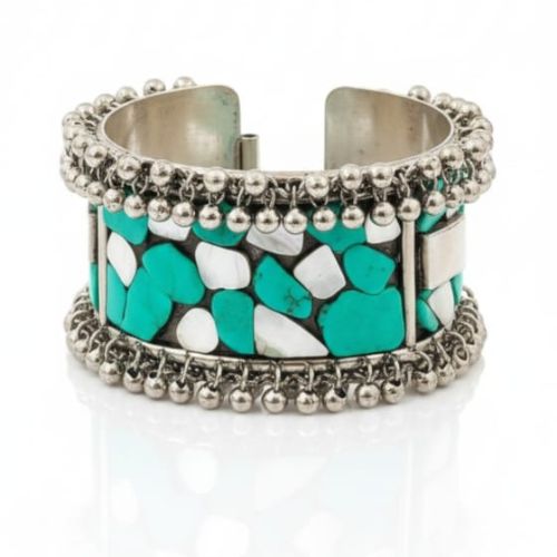 The 610 vintage-style silver-toned cuff bracelet captures classic charm with a timeless, handcrafted feel. Designed with intricate detailing and a softly aged finish, it evokes old-world elegance while remaining effortlessly wearable. The open cuff silhouette ensures a comfortable, adjustable fit for everyday use. Its versatile silver tone complements both casual and formal looks, making it an essential accessory for any collection. Wear it alone for a refined statement or layer it with other bracelets for a bold, curated style. Perfect for those who appreciate heritage-inspired design, enduring quality, and subtle sophistication. A graceful blend of tradition and modern versatility.