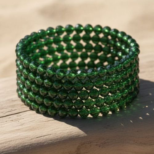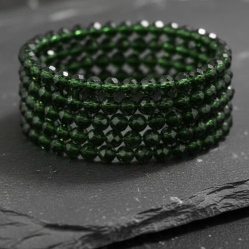 615 dark green glass bead elastic bracelet.