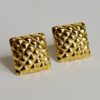 The 627 gold-toned checkerboard-patterned stud earrings are a modern and eye-catching accessory that blends geometric precision with timeless elegance. Featuring a subtle checkerboard texture in a polished gold-toned finish, these studs create visual interest and a contemporary edge. Their compact size and lightweight design make them comfortable for all-day wear, while the versatile pattern complements both casual and formal outfits. Perfect for adding a sophisticated, fashion-forward accent to any look, they can be worn alone for understated elegance or paired with other jewelry for a layered style. A chic, minimalist addition that balances texture, shine, and modern design.