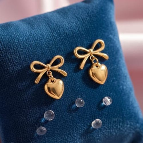 634 gold-toned bow and heart drop earrings,