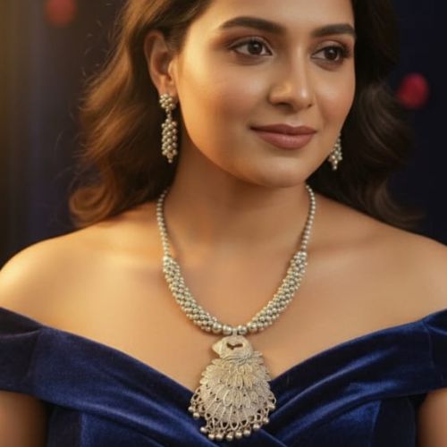 Make a bold style statement with this Beautiful Oxidised Silver Jewelry Set, a perfect blend of vintage charm and ethnic elegance. Crafted with intricate detailing, the set includes a stunning necklace and matching earrings, all featuring traditional motifs in a rustic oxidised silver finish. The antique look adds character, making it ideal for festive occasions, cultural events, or casual ethnic wear. Lightweight and skin-friendly, this set complements both classic and contemporary outfits effortlessly. Whether you’re dressing up for a celebration or adding flair to your everyday look, this oxidised jewelry set brings timeless beauty and graceful sophistication to any ensemble.