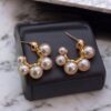 JJK 16 Trendy White Pearls Drop Hoop Korean Earrings.