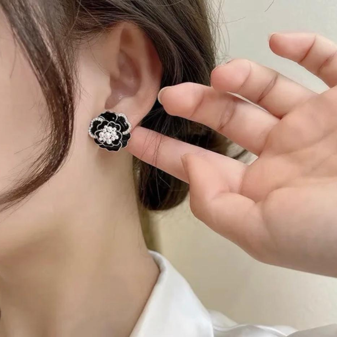 Elevate your elegance with the Black Camellia Pearl Flower Stud Earrings, a stunning tribute to Korean-inspired sophistication. These exquisite earrings feature a delicate camellia flower design crafted with glossy black petals and a luminous pearl center, symbolizing grace and timeless beauty. The contrast between the deep black and the soft pearl creates a captivating and refined look, perfect for adding a touch of luxury to any outfit. Lightweight and comfortable, these studs are ideal for both everyday wear and special occasions. Embrace the understated charm and modern elegance of Korean fashion with these beautiful, versatile earrings.