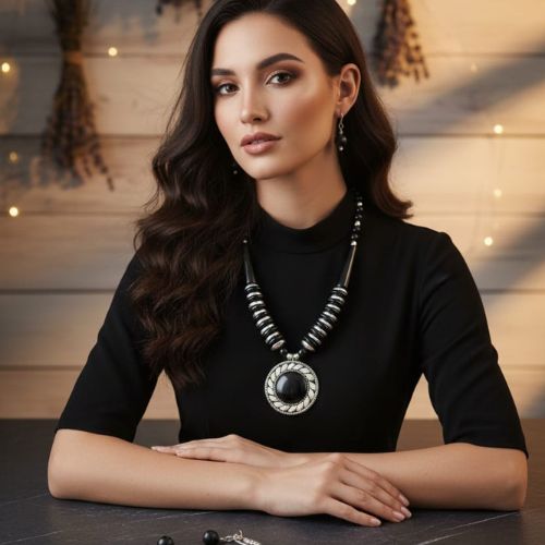 Elevate your style with the captivating Black Rutiles Style Pendant Set, a perfect blend of bold elegance and modern design. Featuring a striking black rutile-inspired centerpiece, this pendant set exudes mystery and sophistication. The unique patterns within the stone add depth and character, making each piece one-of-a-kind. Paired with matching earrings, the set is ideal for both formal events and stylish everyday wear. Crafted with high-quality materials for lasting shine and comfort, it offers a sleek, contemporary look. Whether you’re dressing up for a special occasion or adding flair to your daily outfit, this set makes a powerful style statement.