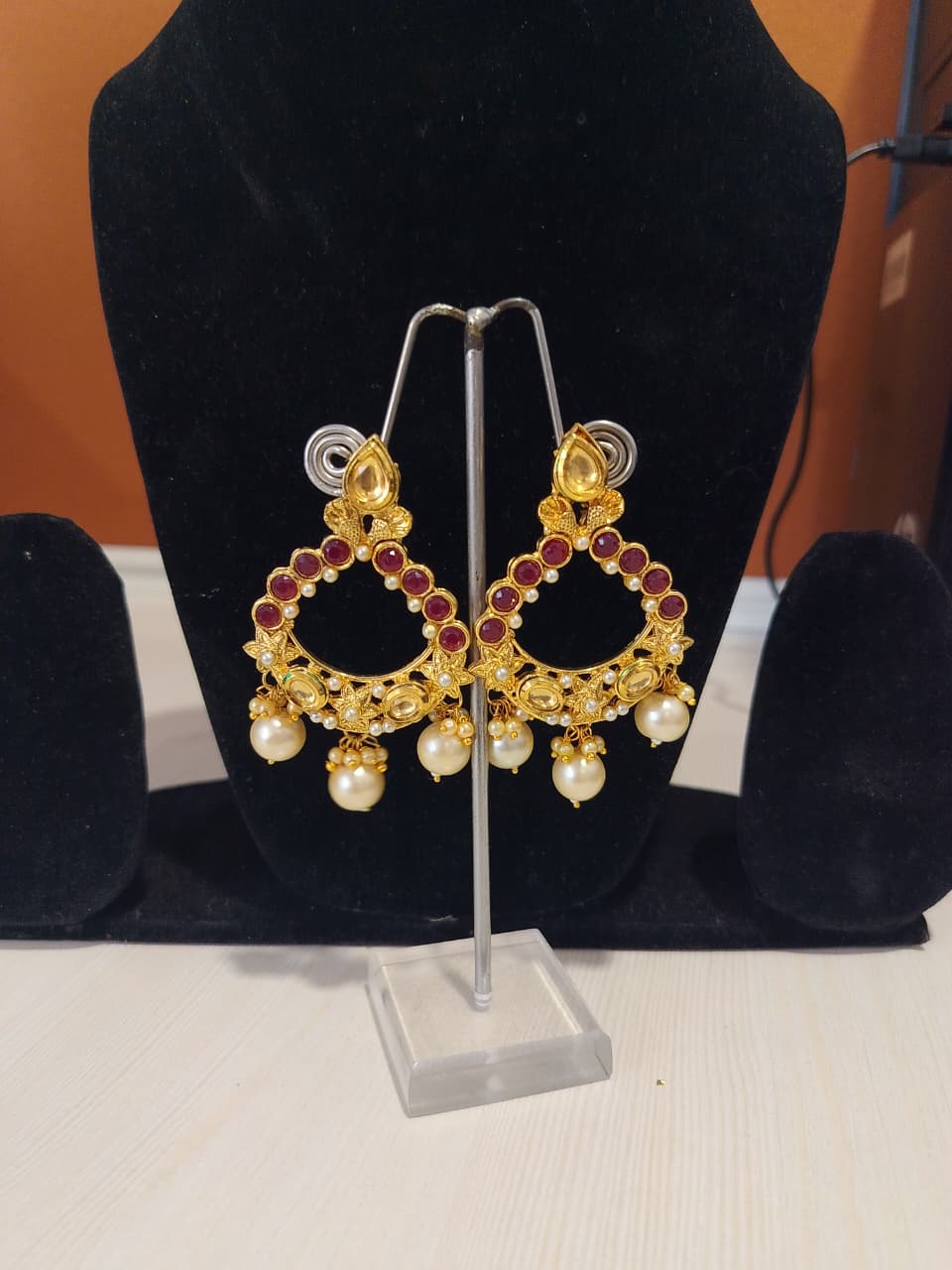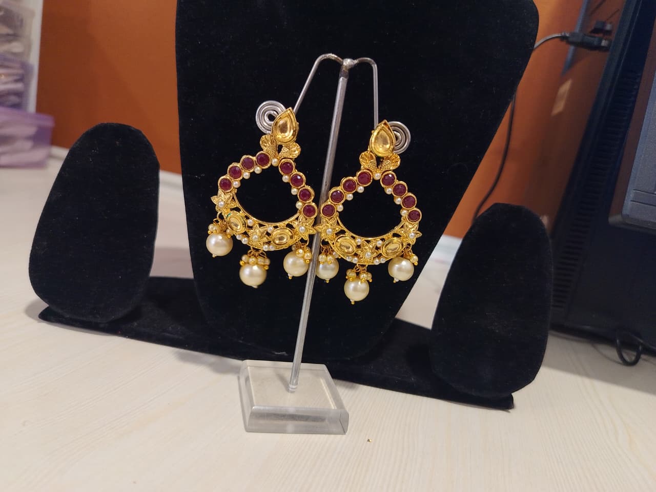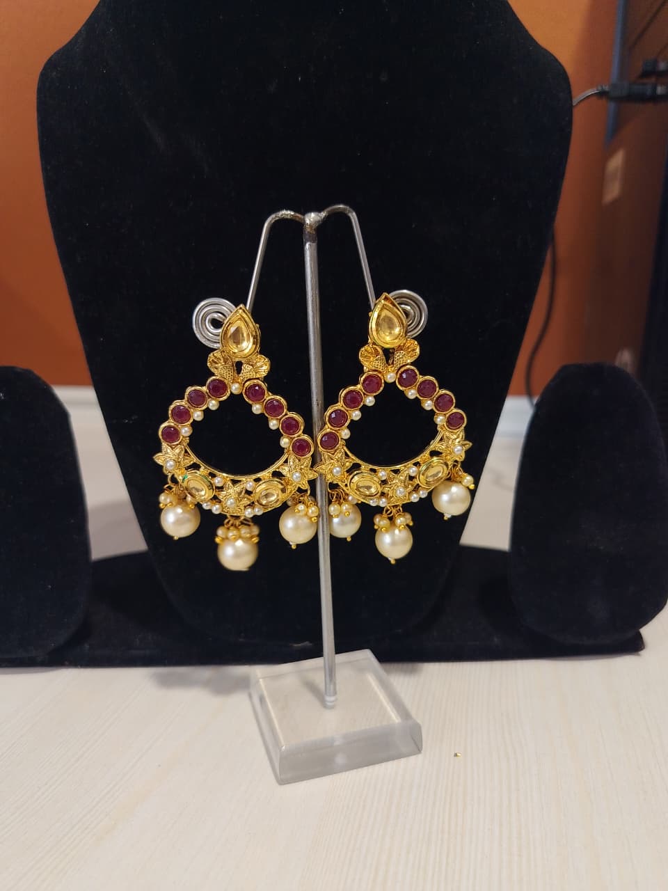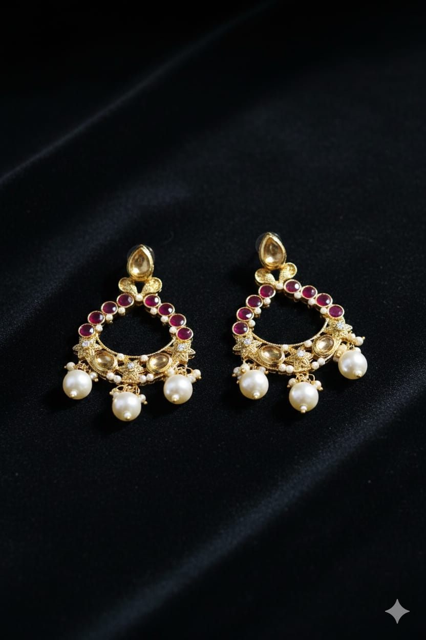 Celebrate timeless beauty with these exquisite earrings that blend the elegance of Chandbali with the charm of traditional Jhumka design. Crafted with intricate detailing and adorned with sparkling stones or pearls, they showcase expert craftsmanship and cultural richness. The crescent-shaped chandbali gracefully curves around the ear, while the classic jhumka drop adds movement and allure. Perfect for weddings, festivals, or special occasions, these earrings complement both traditional and fusion outfits. Lightweight yet striking, they offer comfort without compromising on style. Add a regal touch to your jewellery collection with this versatile and eye-catching pair that reflects heritage and elegance.