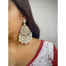 The Chandbali style is a classic Indian jewelry silhouette inspired by the moon (“Chand” means moon, “Baali” means earring) — a crescent‑shaped design that blends elegance with ornate detailing. These earrings often feature intricately carved metalwork, mirror or stone insets, kundan or polki elements, and decorative dangling beads or pearls at the lower edge for graceful movement. Oxidized silver, gold finish, or color accents add character, making them versatile for both ethnic and fusion wear. Chandbalis are festive show‑stoppers — perfect for weddings, traditional celebrations, or to elevate a saree or lehenga with regal charm.