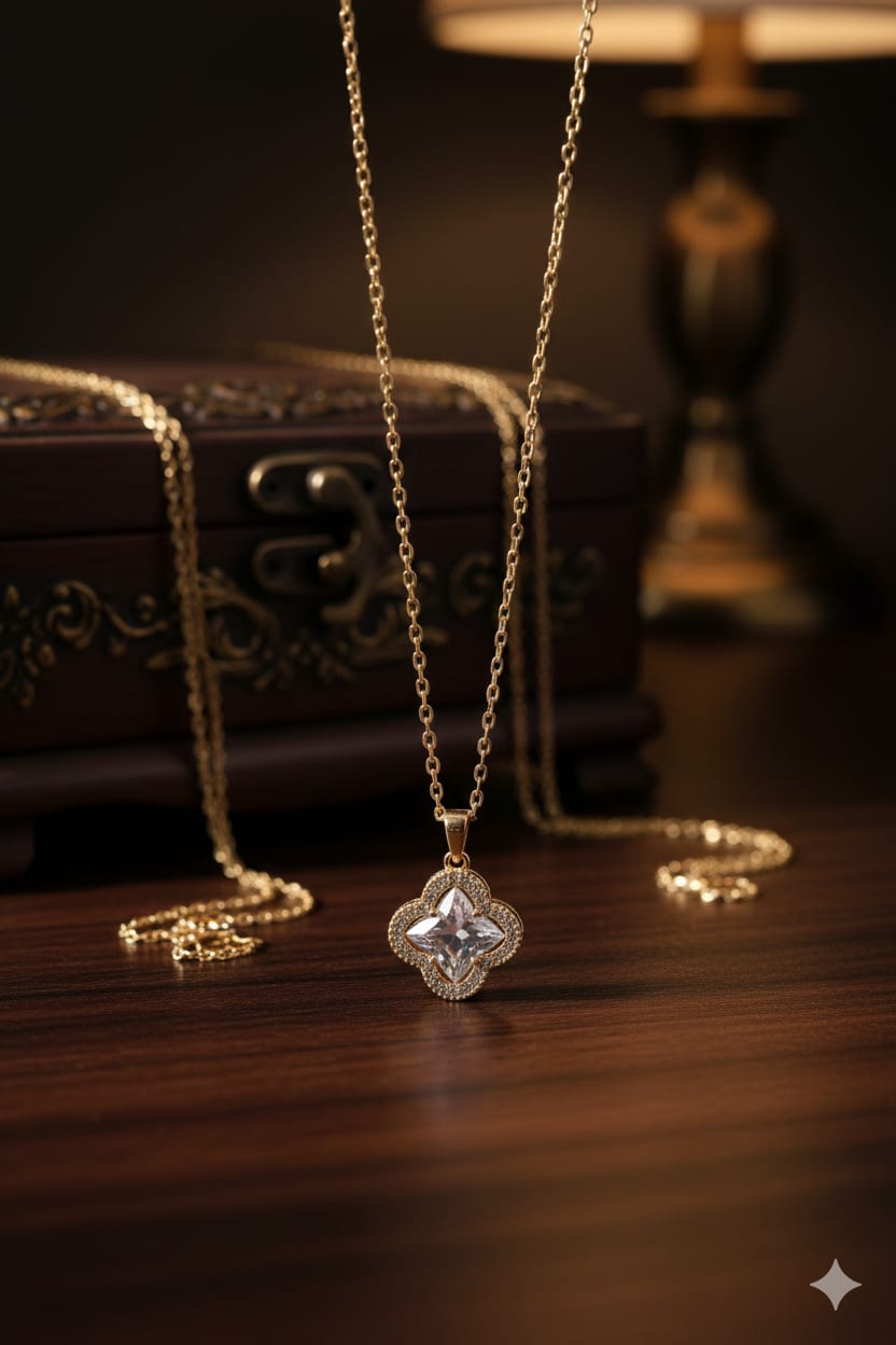 Bring luck and elegance to your style with the Clover Pendant Necklace, a charming accessory that symbolizes hope, faith, love, and luck. Featuring a beautifully crafted four-leaf clover pendant, this necklace is finished with a radiant polish that adds a touch of sophistication to any outfit. Perfect for both everyday wear and special occasions, its lightweight design ensures comfort without compromising on style. Made from high-quality materials for lasting shine and durability, this necklace pairs effortlessly with both casual and formal looks. The Clover Pendant Necklace is a meaningful and stylish piece, making it an ideal gift or personal keepsake.