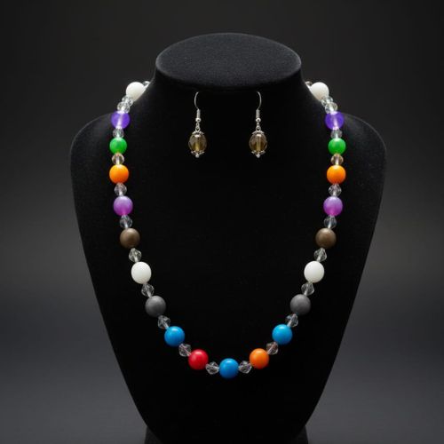 Brighten up your look with this vibrant Colorful Beaded Necklace and Matching Earrings Set. Featuring an array of multi-colored beads in various shapes and sizes, this handcrafted set adds a playful yet elegant touch to any outfit. The necklace sits comfortably around the neckline, while the matching dangle earrings complete the look with effortless charm. Perfect for festivals, casual outings, or adding a pop of color to everyday wear, this set brings joyful energy and artistic flair. Lightweight and easy to wear, it’s an ideal gift or a bold statement piece for your own jewellery collection. Express your unique style beautifully.