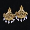 The Dual Peacock Designer Jadau Kundan Earrings with Pearls are a masterpiece of traditional Indian craftsmanship and regal elegance. Featuring two intricately carved peacocks, a symbol of grace and beauty, these earrings are adorned with exquisite Jadau Kundan work that reflects royal heritage. Handcrafted with precision, they showcase radiant uncut stones set in a gold-tone base, complemented by delicate pearl hangings that add a touch of sophistication. Perfect for weddings, festivals, and special occasions, these earrings effortlessly blend opulence with tradition. Their intricate design and timeless charm make them a standout piece in any luxurious jewelry collection.