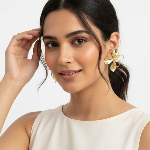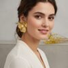 83Elegant Gold-Tone Floral Statement Earrings